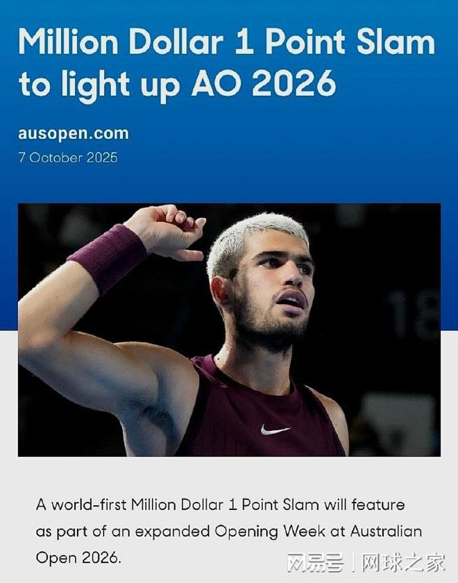 北京时间昨晚,澳网组委会官宣,将在2026年澳网期间引入“一球制胜”赛事,进一步推广网球运动在世界范围内的发展。这项赛事将由22位职业球员和10位澳洲本土业余球员共32人参赛,采取单淘汰赛制,对阵双方通过“石头剪子布”的方式决定发球或者接发球,打一分直接决定胜负,最终五连胜的冠军球员将带走100万澳元的奖金。据报道,世界第一、西班牙红星阿尔卡拉斯已经确认参赛。有球迷调侃,这不就是咱们中国上海前些年玩过的比赛吗?那可以直接找澳网要专利费啦!