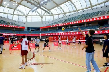 2025年10月8日,第七届上海市民排球节“排球能量”高校青春乐活赛总决赛暨交大新生体育文化节排球嘉年华活动,在上海交通大学霍英东体育中心盛大举行。作为东道主,上海交通大学携手华东师范大学、华东理工大学等沪上八所高校的男女混合排球队齐聚一堂,在市民排球节的舞台上,通过趣味游戏与激烈比赛,共同掀起了一场属于高校青年的青春风暴。