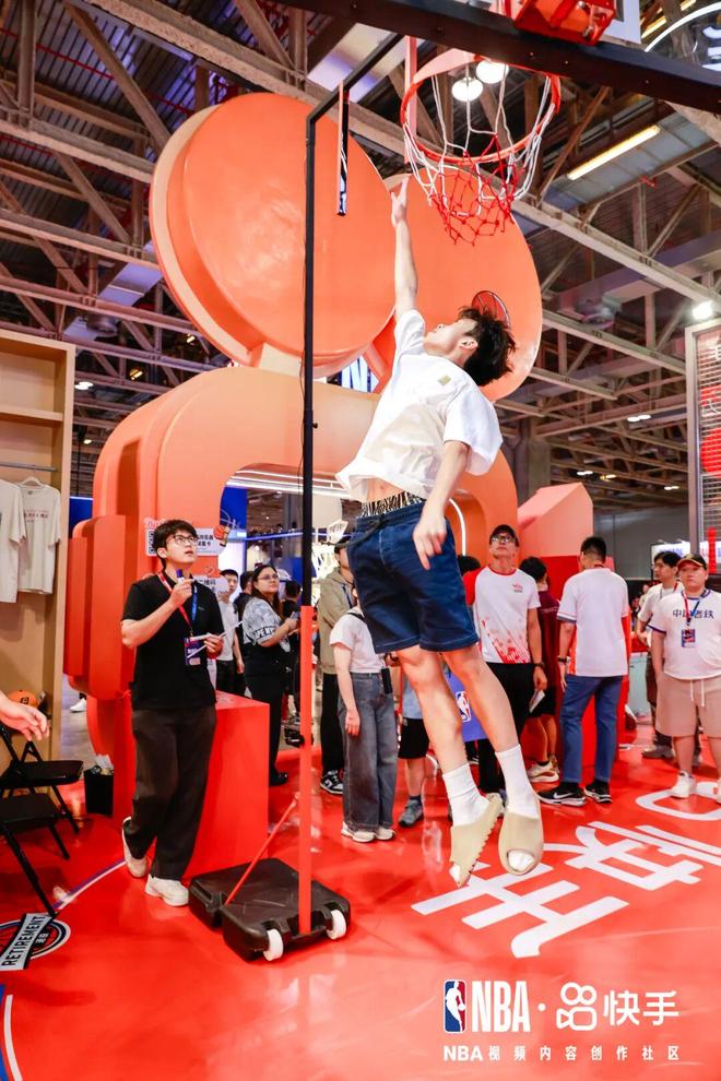 正式开启「NBA职业生涯」 体验后,快手也为球迷创造了一个 NBA 球员的成长轨迹。摸高扣篮挑战成为热门环节,展区内设置红外线感应摸高器,实时记录并更新摸高榜单 TOP 排名,每个人都可以把自己的记录登记上榜;而在「 退役环节 」 ,快手复刻 NBA 球员更衣室场景,观众可坐在球员专属座椅上拍摄留念,感受职业球员赛后放松的专属空间; 体验尾声,观众还能通过快手可灵AI生成 个人专属球星卡,并现场打印制作,将此次NBA生 涯体验的回忆永久珍藏。