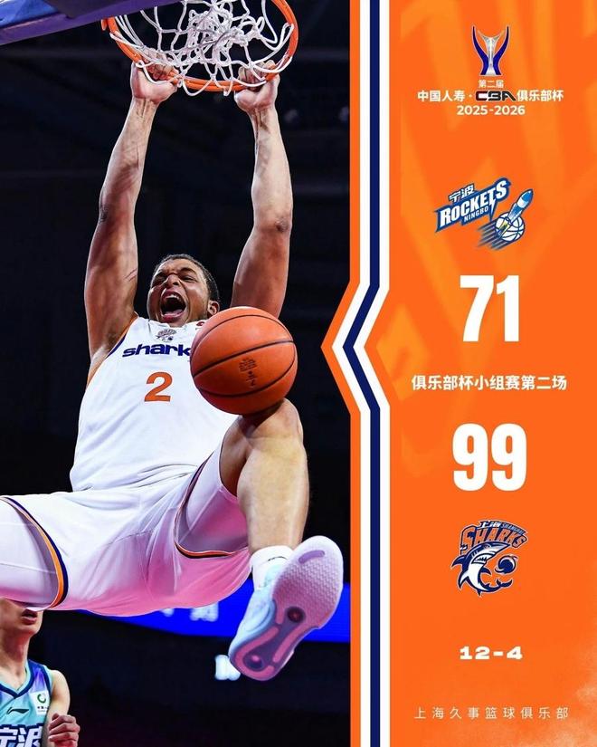在第二届CBA俱乐部杯B组小组赛中,卫冕冠军上海久事男篮展现了强大实力。继首战以111比72大胜全华班出战的四川队后,该队在12月4日的第二轮比赛中背靠背出战,以99比71再胜宁波町渥队,强势收获两连胜。两场比赛,上海队男篮累计净胜对手高达67分,提前锁定B组上半区头名。