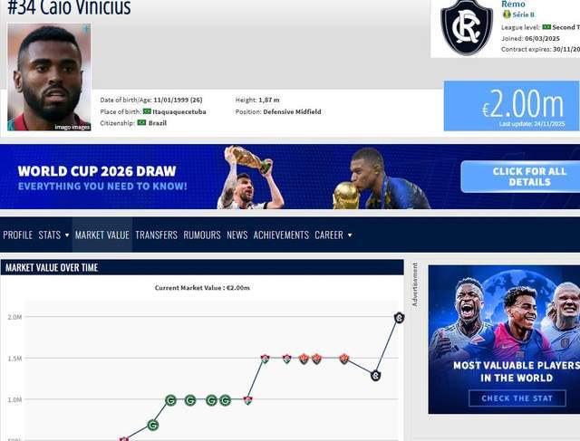 第二个,卡约是核心级球员,他在本赛季带领巴乙联赛升班马贝伦赛艇直接冲甲成功,球队直接连升2级,卡约作为队长功不可没,在本赛季巴乙联赛抢断榜名列第3名,他的身价半年暴涨70万欧,是队内第一身价,巴乙身价第11名。